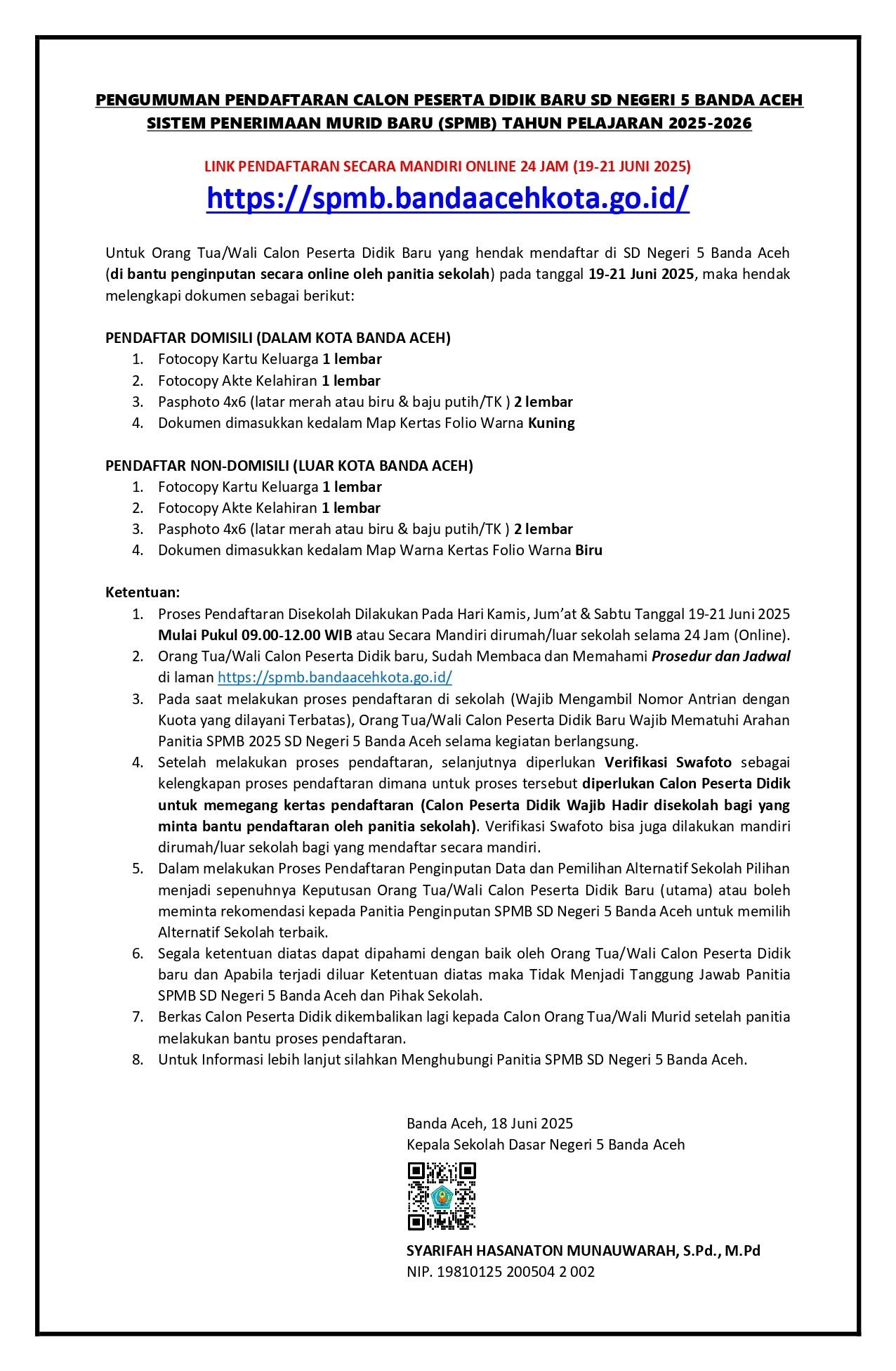 LINK PENDAFTARAN : https://spmb.bandaacehkota.go.id/